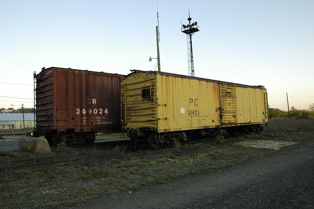 ヤード端に放置されたボックスカー、倉庫か