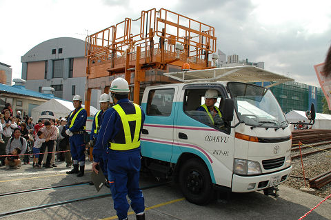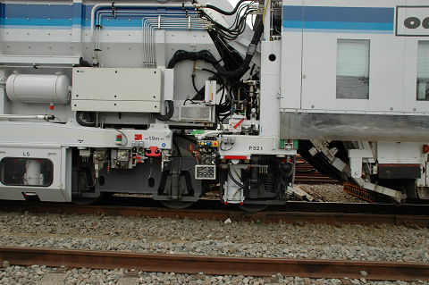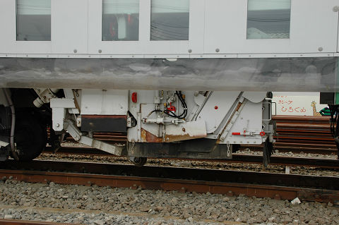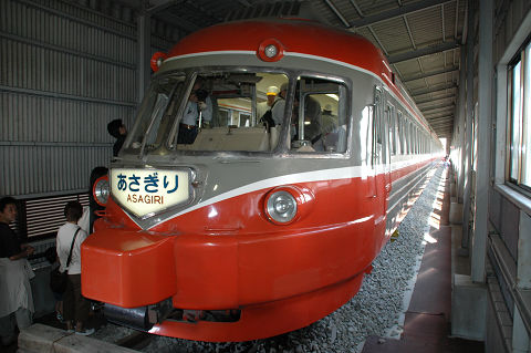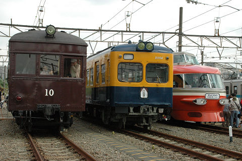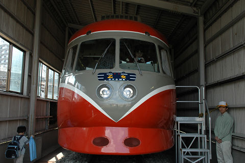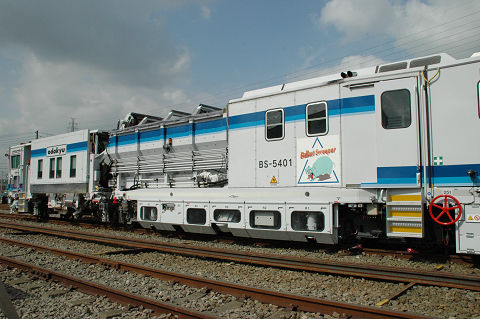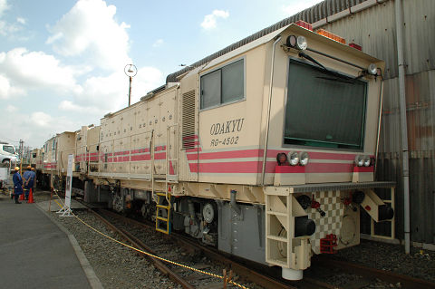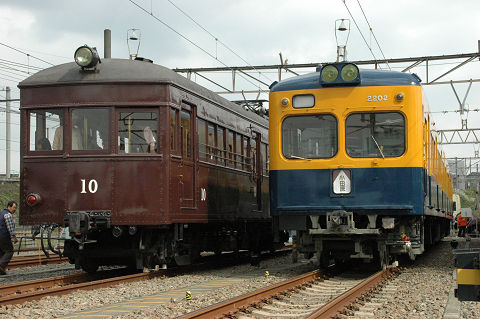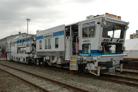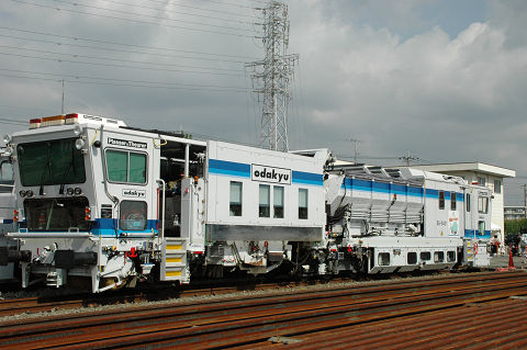 相変わらず保線機械がメインになっております。 新しいスイーパーはプラッサ製、みたところコンパクタ、レギュレーターと一体化されているようです。従来機種に比べてホッパに収容できるバラスト量が増えたそうで、作業能率が向上したとか。たしか京急でもこのような一体型の機種(松山製)があったと思うので、ちょっとした流行なのかもしれません。また方向転換のためか中間で分割出来るようになっています。ただ大変重要なことを聞き忘れていて、どっちが前かわかりません。これは困った・・・。 さて、モハ1形は1927年の小田急開業時に18両が用意された車両です。その後戦中の大東急を経て戦後1947年に相模鉄道に9両が譲渡されたほかはそのまま小田急に残り、一部はGHQ専用車としても使われました。1960年まで旅客用(1両は1957年に荷物車に改造)として使用されました。荷物車に改造された一両(1101)は、その後強制振子機構の試験などにも供されましたが、1976年に廃車となりました。現存の一両は熊本電気鉄道に譲渡されていたものを再譲渡して1983年に復元したものです。 2006.10 小田急海老名検車区 |