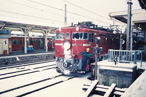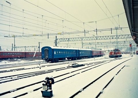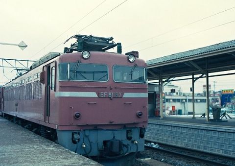 当時の普通列車は客車列車が主流、色あせたEF81ががんばります。