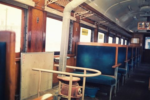 ストーブ列車の車内、ニスの懐かしい香りが漂ってきそうです。