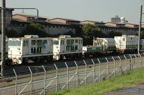 行徳検車区奥に憩う保線編成。