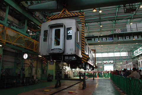恒例の車体吊り上げ、ごらんの様な大変な人だかりです。