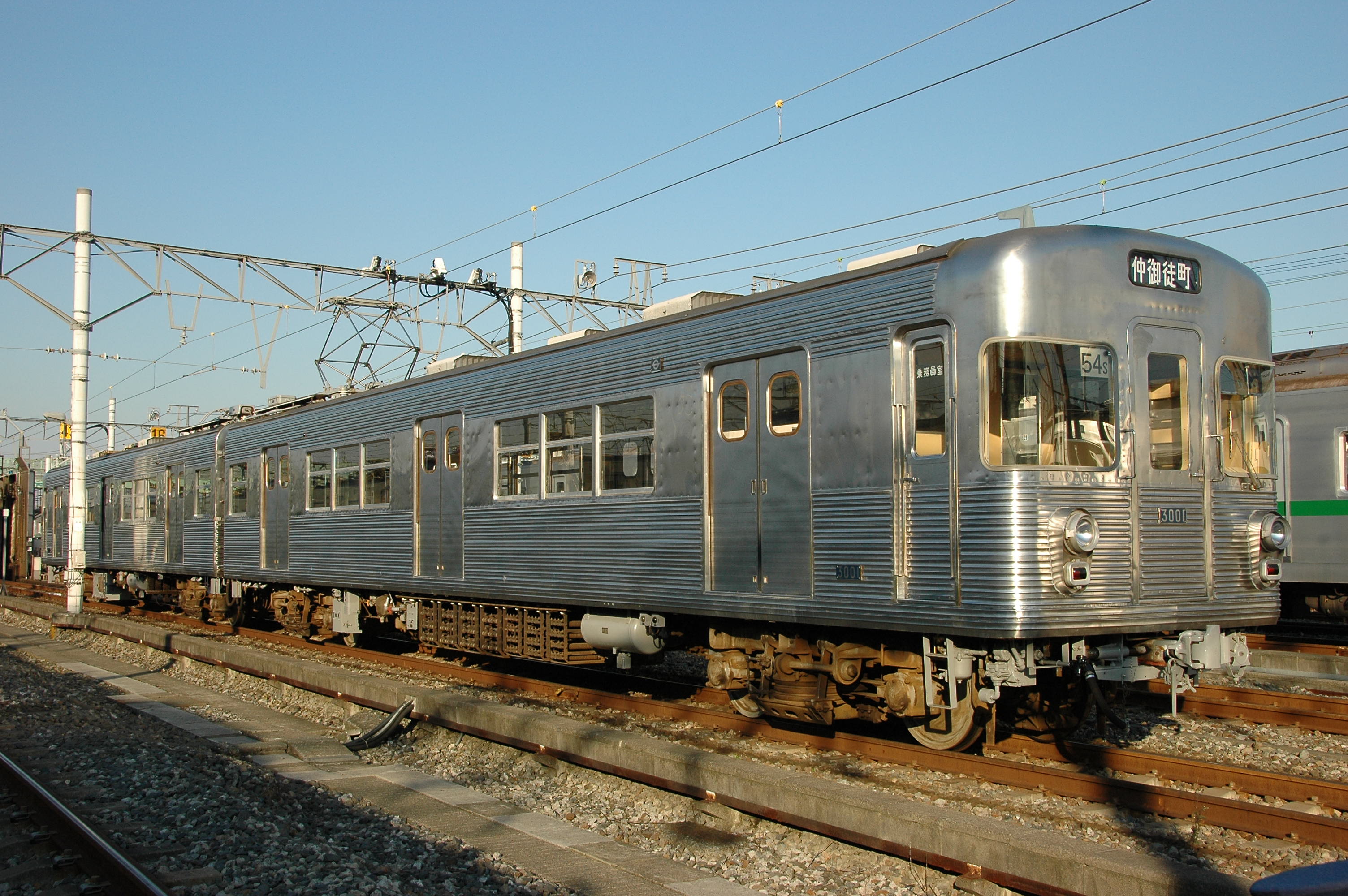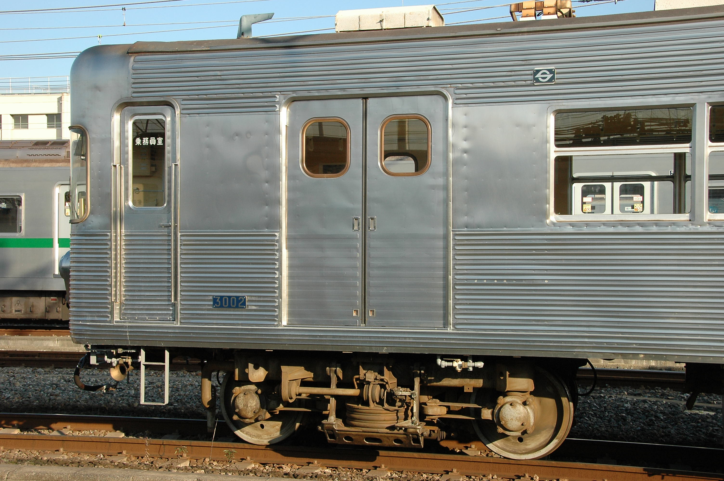 ▲整備中の6000系、鈍く光るアルミの質感が独特