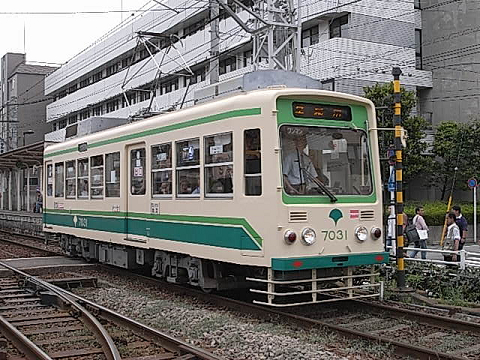 ▲都電の顔として長く親しまれる7000系