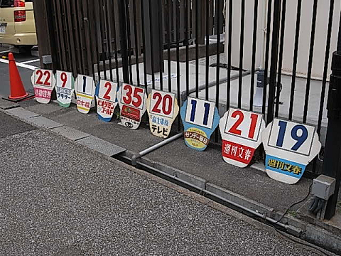 ▲ずらりと並んだ系統表示板 広告も時代を感じる