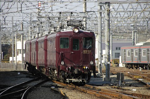 関東ではなかなかコアな魅力の車輌として受けていた、相鉄のED10型とモニ2000型が廃車となることになり、さよならイベントが行われました。仕事の都合で私は朝の送り込み回送しか見れなかったのですが、ED10については吊り掛け音も高らかに、最後の力走が見られました。モニについては残念ながら良い撮影ポイントが確保できませんでしたが、屋根上が見られたのでまあいいかな・・・ 今回の主役については以下の通りです。 相鉄のED10について。1952年から65年にかけて東洋電機で四両が製作された電気機関車です。もともと相鉄では厚木基地への燃料輸送や相模川からの河砂利輸送などの貨物需要があった為に製作されたものですが、近年は貨物輸送が無くなり入換用に使われる程度だったようです。出力が相当低いらしく(ゴメンなさい、具体的な出力のデータが見つからなくて・・・)常に二両一組でないと仕事できないそうです。四両全ての細部が違うという、なかなかファンにはたまらない魅力のある車輌でもあります。 モニ2000は旧国鉄からの払い下げ車輌(いわゆる戦災国電のようです)を改造した架線検測車で、同期の払い下げ車輌はかつて伊豆箱根鉄道の大雄山線などでも活躍していましたが、現在ではこの原形を保っているのが奇跡的な事も含めて払い下げ国電の生き証人的な、大変貴重な存在になっています。もともとは当然ながら旅客用でしたが、1976年に荷物車へ改造され、更に1978年には荷物輸送が廃止された為に現在は月一回の架線検測と、かしわ台工場内の入替車及び救援車として使われています。 2006.02.26 相鉄かしわ台駅にて |
