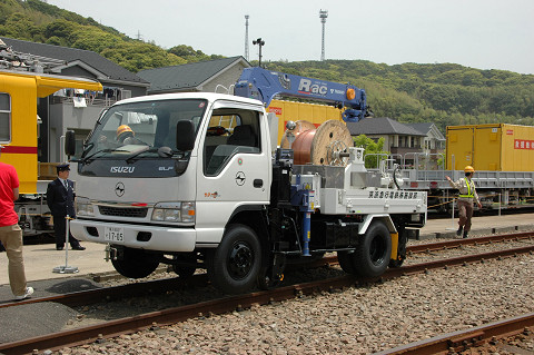 ▲架線車、こちらは簡易な軌陸車の構造です
