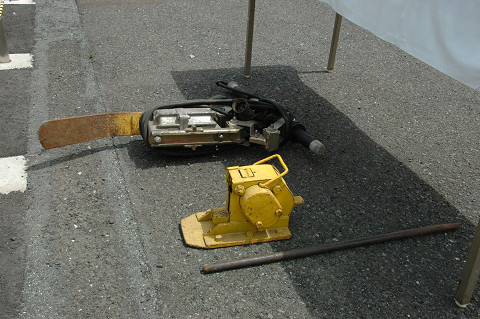 ▲手作業用のバラスト掻きとレール敷設用工具