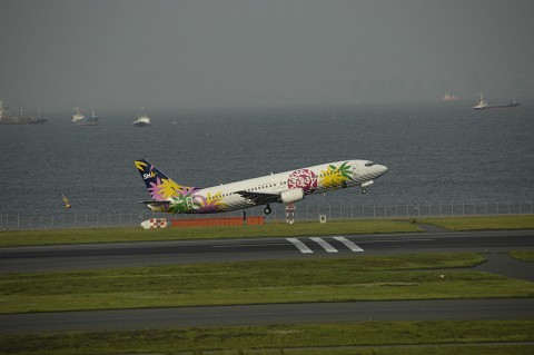 スカイマークの737、この塗装は小型機によく似合います。