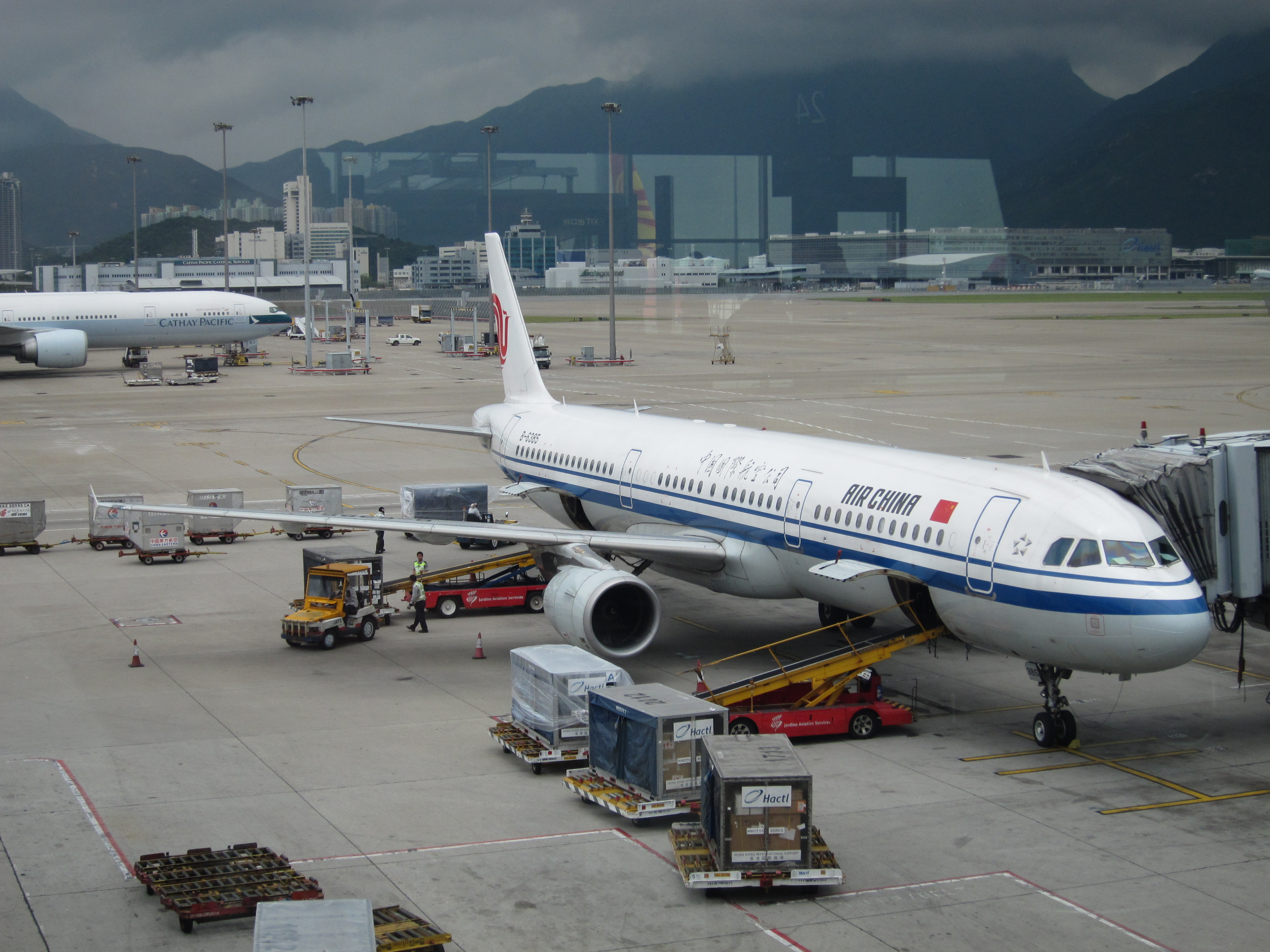 お出かけの合間に撮った、香港空港の風景です。屋内からの撮影ですので一部にガラスの映り込みなどが入ってしまっています。
